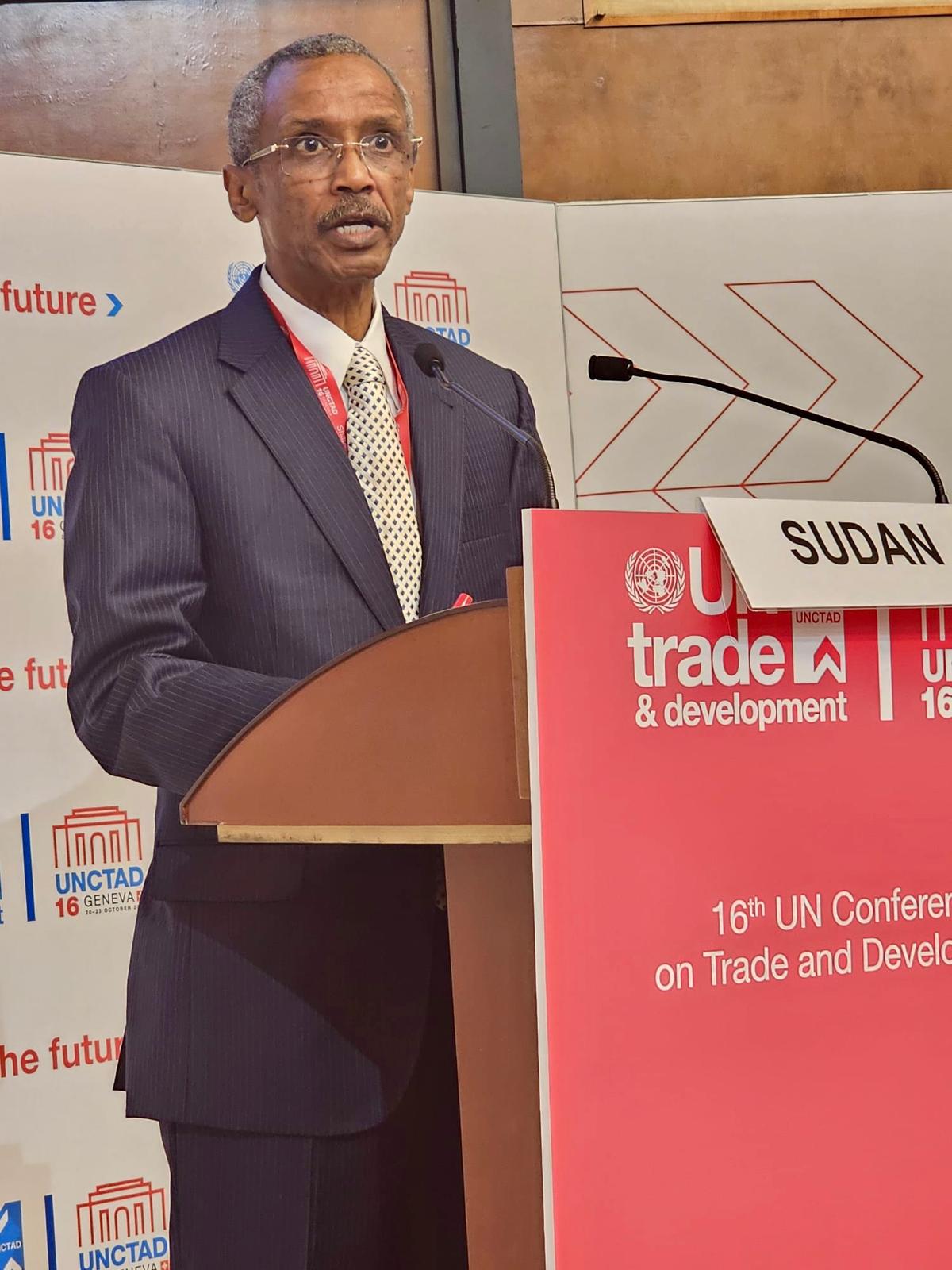قدم السيد المندوب الدائم السفير حسن حامد، بيان السودان أمام المؤتمر الوزاري السادس عشر لمنظمة الأمم المتحدة للتجارة والتنمية (الأونكتاد)، حيث استعرض سيادته حجم الاستهداف والتخريب الممنهج الذي قامت به المليشيا المتمردة لبنية الدولة التحتية والاقتصادية بما في ذلك مشروعات الإنتاج والتصنيع الكبرى، والوزارات والمؤسسات والأجهزة ذات الصلة بالنظم المالية والمصرفية.
