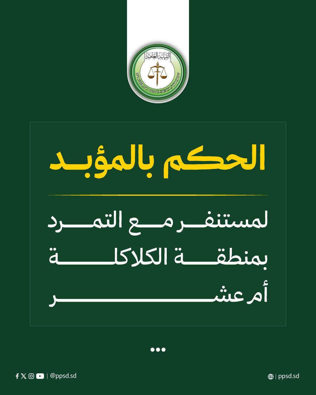 أصدرت المحكمة المختصة بالكلاكلة حكماً بالسجن المؤبد لمدة (20) عاماً في مواجهة المتهم (م.م.م)، بعد إدانته بالتعاون مع التمرد بمنطقة أم عشر.