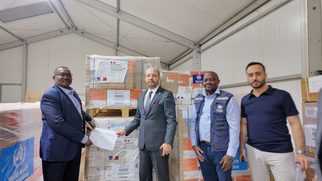 من جانبه، أشاد د. الشبلي صهباني، مدير مكتب منظمة الصحة العالمية في السودان، بالعلاقة الجيدة والتنسيق الممتاز مع وزارة الصحة الاتحادية، مؤكداً أن هذه الأدوية ستُرحّل إلى الولايات وفق خطة توزيع تُعدها الإدارة العامة للطوارئ الصحية ومكافحة الأوبئة، وأن المنظمة جاهزة لتقديم المزيد من الدعم الصحي والأدوية والمحاليل الوريدية إلى جانب تدريب الكوادر.