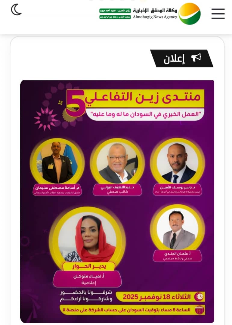 أخبار السفير معاوية التوم والأستاذة سمية سيد يتناولان تحديات حكومة الأمل في برنامج [ اكثر من حوار ] علي ” الزرقاء القاهرة : اخبار السودان يستضيف برنامج [ اكثر من حوار ] الذي تبثه قناة الزرقاء الفضائية مساء كل جمعة –…